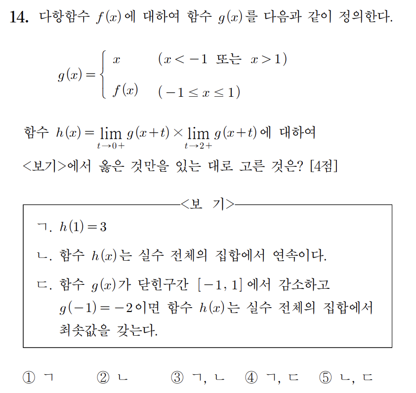 오답 오답이라 그냥 잘랐다. 근데 g(x) = h(x)-h(4)+h(x) 추론한건 신기하다.