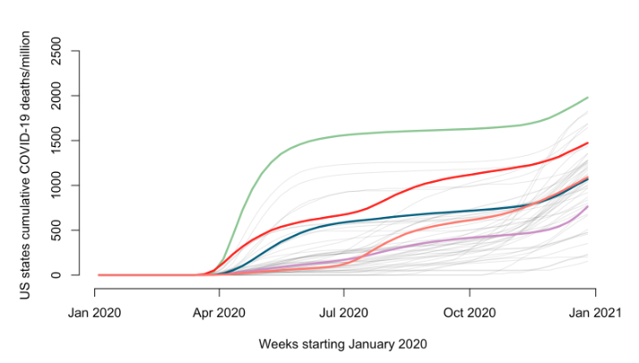 예시) 미국 State별 주간 코로나 사망자 수