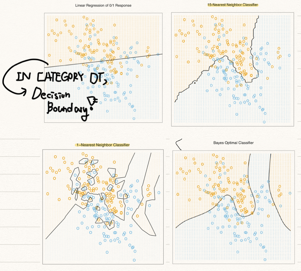 In a classification situation, there is a method called the Nearest-Neighbor Method, which is an alternative to Least Squares Method. Least Squares Method finds the extreme point in a function to minimize the error, while Nearest-Neighbor is the way to estimate a value using the average of nearby values.
